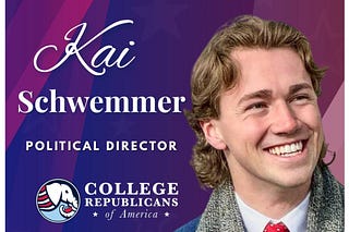 Kai Schwemmer, a 23-year-old college student from Utah, was named the new political director for the College Republicans of America (CRA) on March 5.