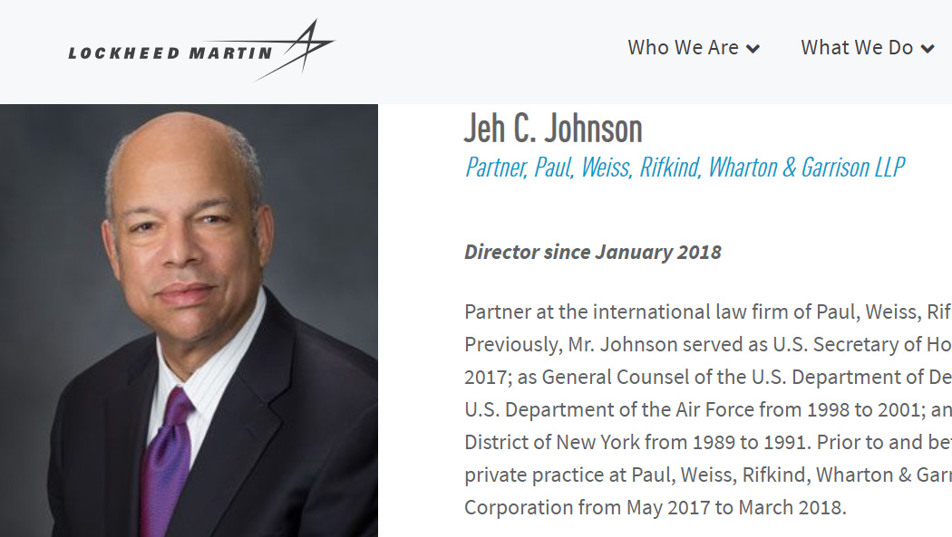 But neither Johnson nor NBC disclosed that Johnson currently serves on the board of defense contractor Lockheed Martin. The company paid Johnson $310,000 in cash and stock compensation in 2018, according to Lockheed Martin's proxy statement.
