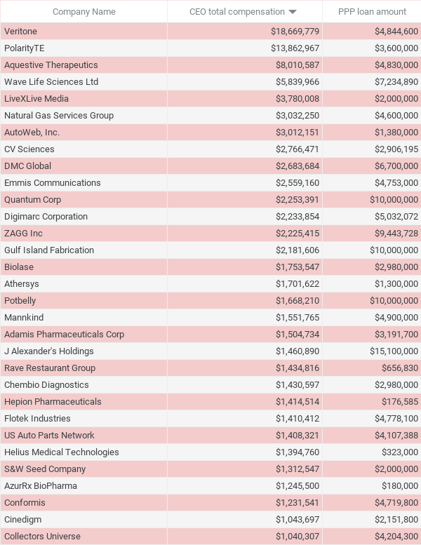 The 32 companies paying their CEOs millions while collecting taxpayer money intended for struggling small businesses