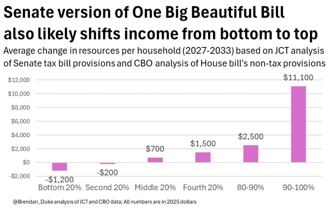 Although there are some changes to the Senate version of Trump's megabill, according to John Ricco of Yale Budget Lab, none of these changes would fundamentally alter the results of this analysis.