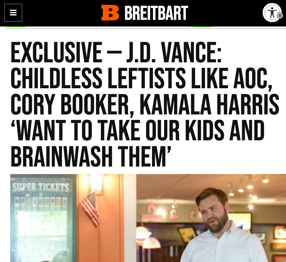 Vance went on to say that people with kids are "happier," "healthier," and "better prepared to actually lead this country." In an October 21, 2021 appearance on the Breitbart News Daily, Vance said that Democrats "next generation of leaders," including "the Kamala Harrises," "don't have kids." As a result, Harris and others "want to take our kids and brainwash them so that their ideas continue to exist in the next generation."