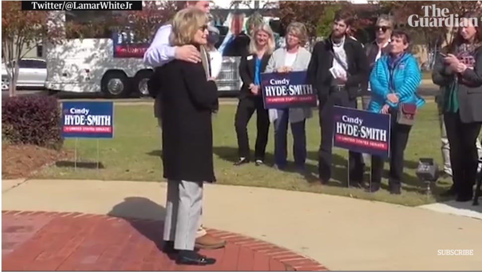 Senator Cindy Hyde-Smith (R-MS) has still not apologized for comments earlier this month where she expressed a willingness to attend a lynching. "If he invited me to a public hanging, I’d be on the front row," Hyde-Smith said to a small crowd on November 2.