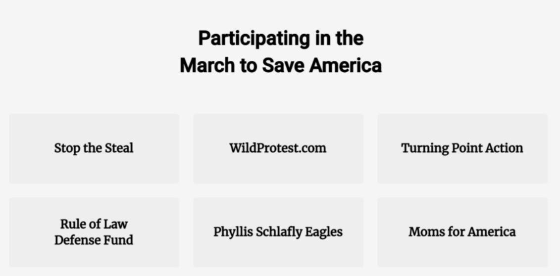 On the March to Save America website, which is no longer online, the Rule of Law Defense Fund was listed alongside "Stop the Steal" and "Wildprotest.com" as a participating organization.