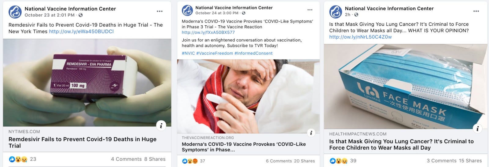 Meanwhile, on its Facebook page, which has more than 209,000 followers, the NVIC routinely shares articles that highlight failed vaccine trials and downplays the severity of the virus. It has also been caught sharing vaccine conspiracy videos, including one by a QAnon influencer and another targeting Bill Gates.