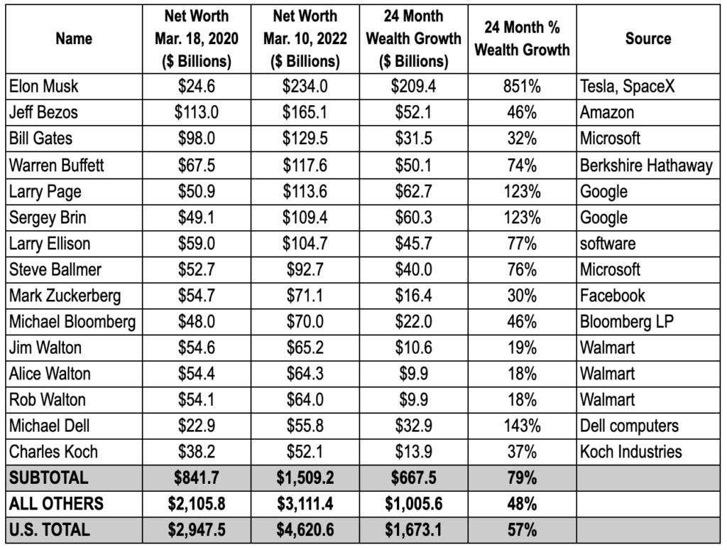There are now 704 American billionaires. They are currently worth, collectively, $4.6 trillion. Their total increase in wealth in the last 24 months ($1.7 trillion) would be enough to extend the expanded child tax credit for 16 years.