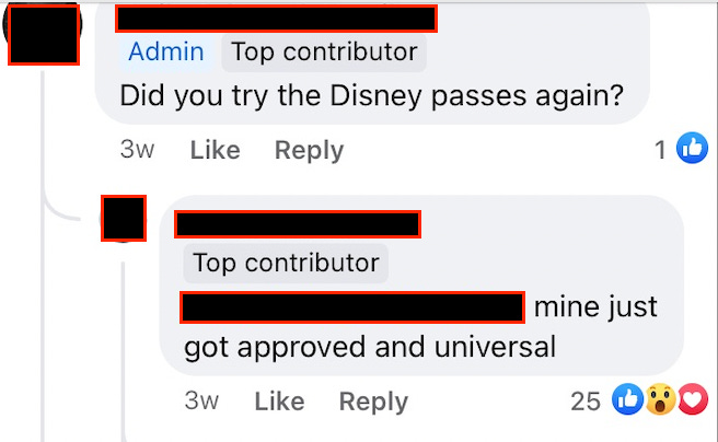 In one exchange posted in a private Facebook group last month, a parent inquires if anyone has had luck getting passes to Disney World approved through the program. Another parent responds that she was able to get passes for Disney World and Universal Studios paid for with taxpayer funds.