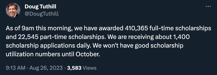 The Florida voucher program for homeschooled students is part of a larger and rapidly expanding state voucher program. Doug Tuthill, President of Step Up For Students, posted on August 26 that his organization had already awarded vouchers to 410,000 full-time students.