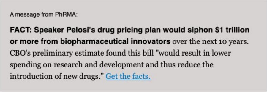 Over the past few weeks, Politico Playbook, one of the most widely read political newsletters, has been featuring an advertisement from PhRMA, the lobbying arm of the pharmaceutical industry.