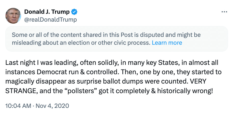In 2020, Donald Trump declared himself the winner of any state where a partial tally of votes showed him ahead.