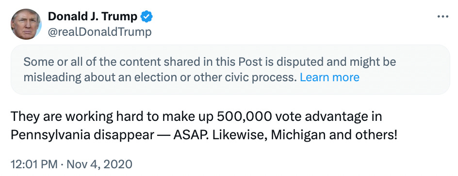 This year, Trump and his allies are setting the table for a similar strategy. At a press conference last Tuesday at Mar-a-Lago, Trump claimed that there were some "bad spots in Pennsylvania" where "serious things have been caught." On Wednesday morning on Truth Social, Trump escalated his rhetoric: "Pennsylvania is cheating, and getting caught, at large scale levels rarely seen before. REPORT CHEATING TO AUTHORITIES. Law Enforcement must act, NOW!" On X, Trump's allies are making similar baseless claims about cheating in Michigan, Georgia, and Texas.