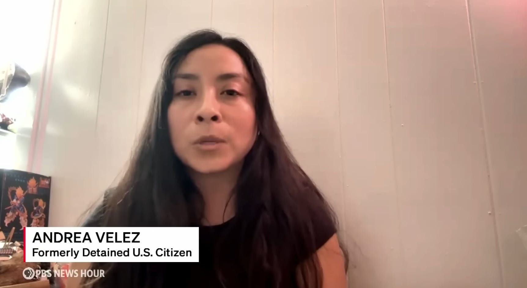 On June 24, Andrea Velez, a U.S. citizen, was “swept up in an immigration raid on her way to work“ in Los Angeles. Velez says she was “knocked to the ground by an ICE officer, and despite declaring her citizenship was detained and led to a car.” Believing she was being kidnapped, she attempted to run to two police officers before the ICE agents caught her. Velez “spent two nights in jail before facing a felony charge for obstructing an officer, a charge the Justice Department dropped two weeks later.”