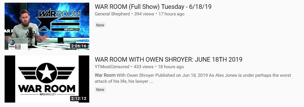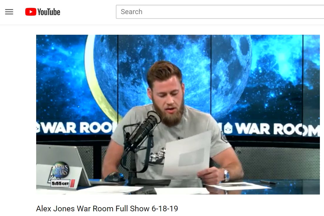 Although Shroyer is banned from YouTube, the video of the InfoWars show was simply uploaded by another user. YouTube does not appear to have systems in place that prevent InfoWars content from being uploaded.