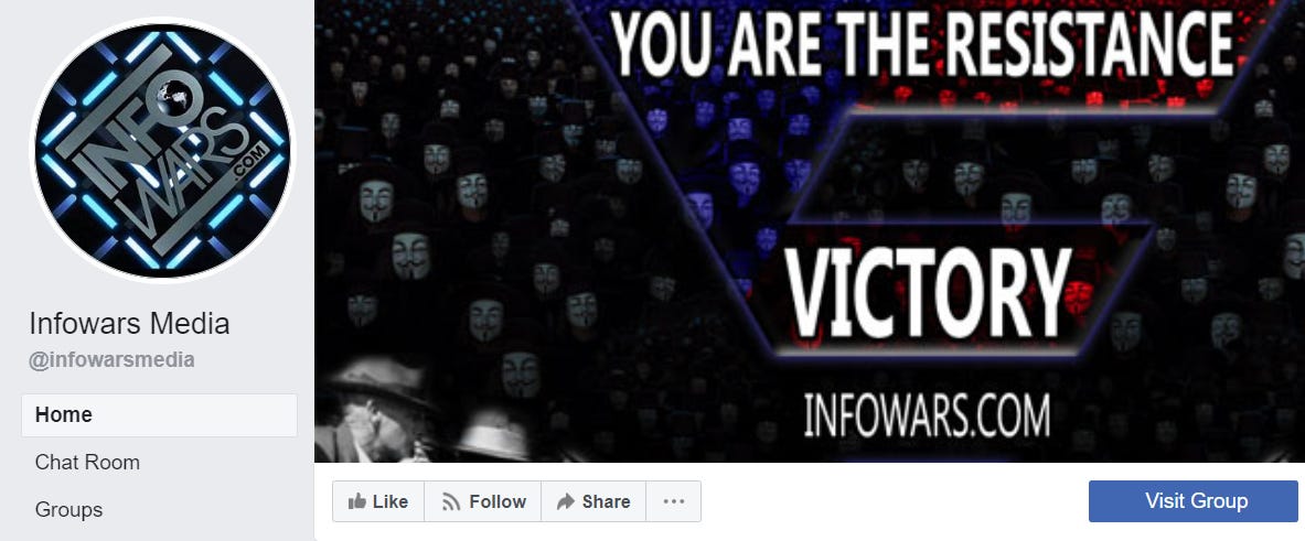 InfoWars content is, however, still available on Facebook. There are 12,000 people who are members of the "Infowars Media" page on Facebook.