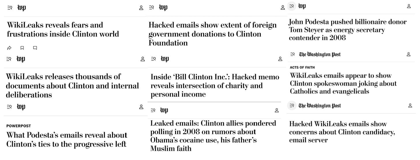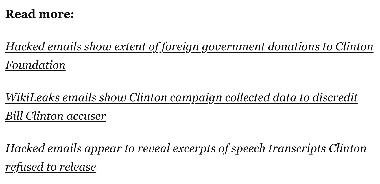 At the end of these articles, the Washington Post often directed readers to more of its extensive coverage of the hacked materials.
