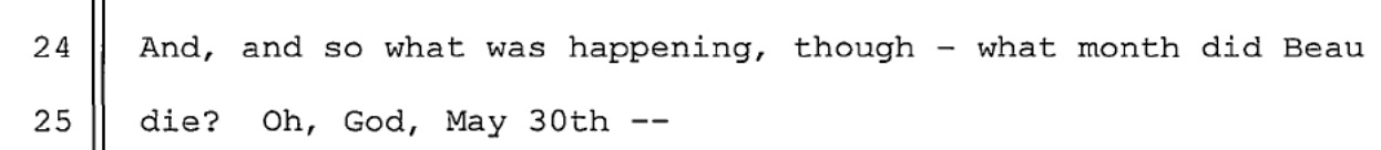 Another aspect of Hur's report that attracted media attention was Hur's contention that Biden "did not remember, even within several years, when his son Beau died." But Hur did not mention, when the subject came up, that Biden immediately identified the month and day of his son's death.