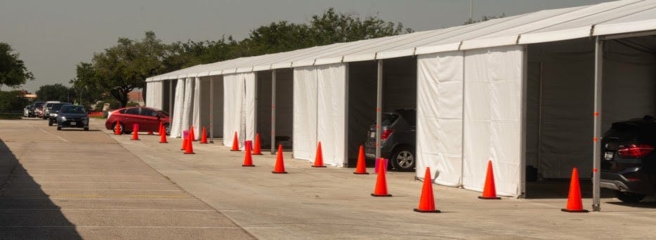 The county notes that "the Election Code explicitly allows temporary and movable structures for voting." It even says that such structures can be created with "ropes." Indeed, "other Texas counties have set up stationary tents at walk-in polling locations to provide extra booths to early voters." The only difference is whether you get out of your car or not.