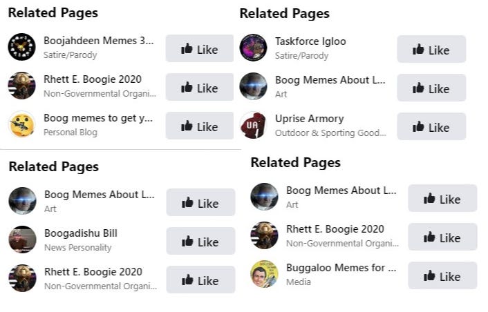 Despite Facebook's stated policy, Popular Information was repeatedly directed to various "related" Boogaloo pages on Facebook.