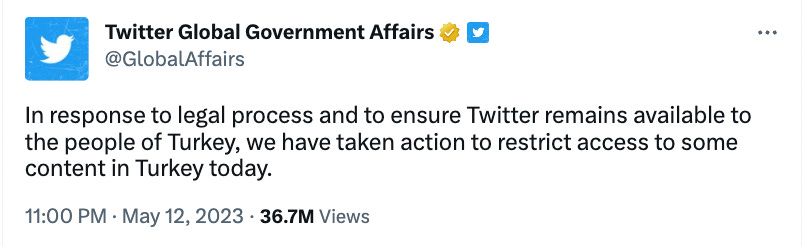 Musk later pledged to "post what the government in Turkey sent us." As of this writing, however, Twitter has not released that information. Therefore, the scope of the censorship remains unknown.