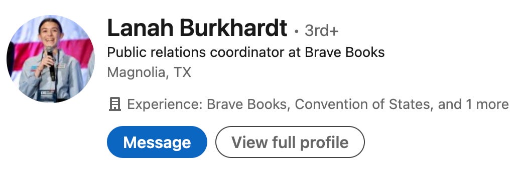 Neither Brave Books nor Burkhardt disclosed that Burkhardt is an employee of Brave Books. According to her LinkedIn profile, Burkhardt is the company's "public relations coordinator."