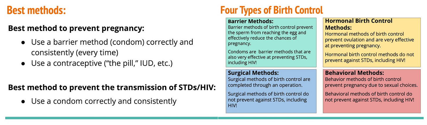 The old Orange County 8th grade curriculum also included information about the various kinds of birth control, their efficacy, and whether or not they helped reduce the risk of STDs. This information has also been removed.