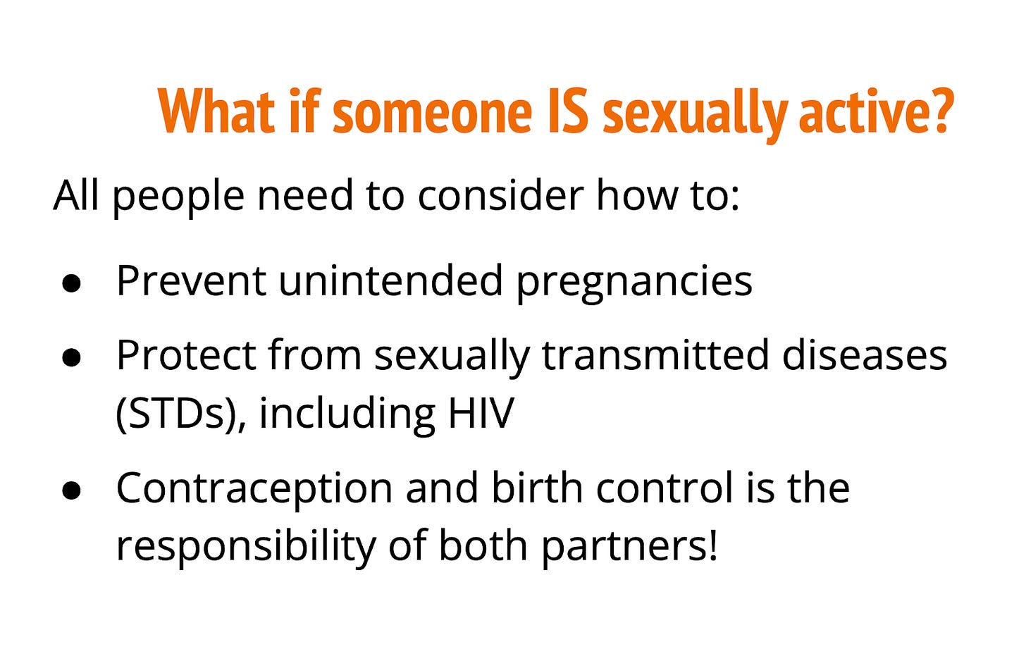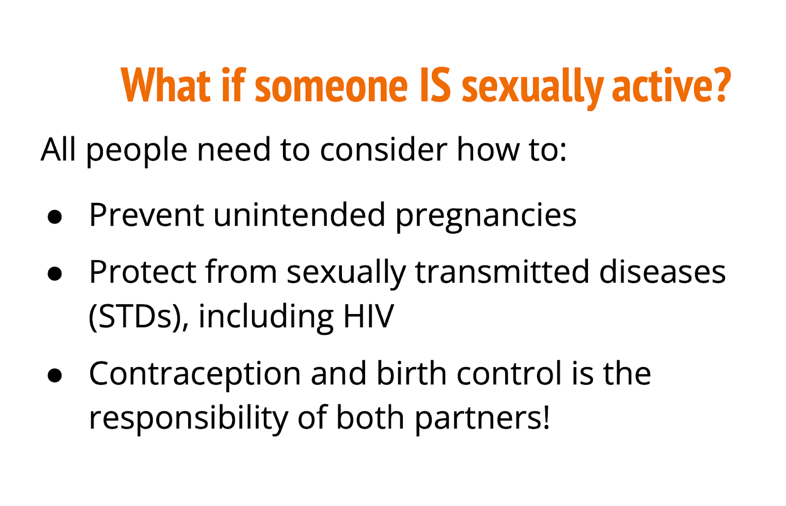 The new Orange County 8th grade sex education curriculum, for example, emphasizes that abstinence is the only 100% effective method to prevent sexually transmitted diseases or pregnancy. The same information was included in Orange County's previous 8th grade sex education curriculum, taught in prior years, and submitted to the Florida Department of Education for the 2023-24 school year, but never approved.