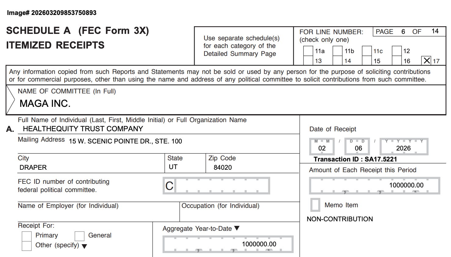 HealthEquity is now making a major push for a more dramatic expansion of the HSA market. Meanwhile, a campaign finance report filed on Friday night revealed that MAGA, Inc, President Trump’s Super PAC, received a $1 million donation from HealthEquity on February 6. The money came directly from the company’s corporate treasury.