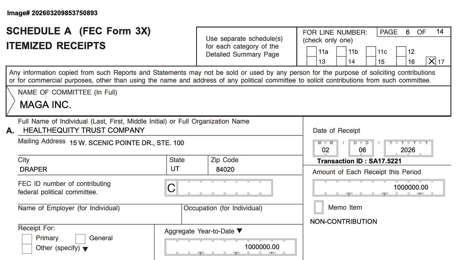 HealthEquity began pushing these radical proposals just 18 days after donating $1 million to MAGA Inc.