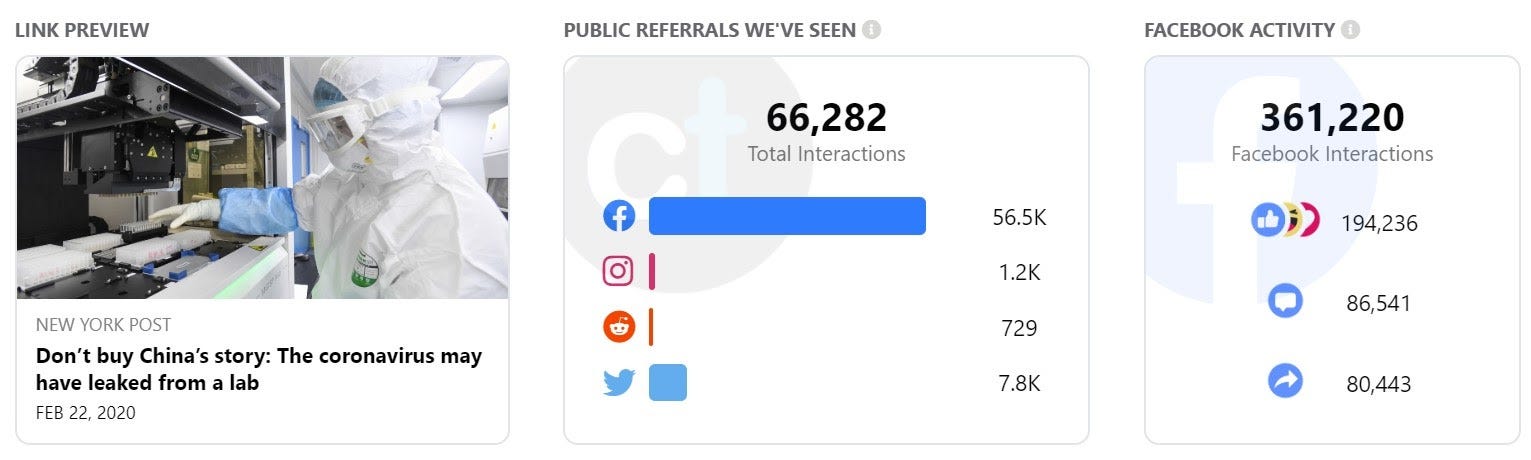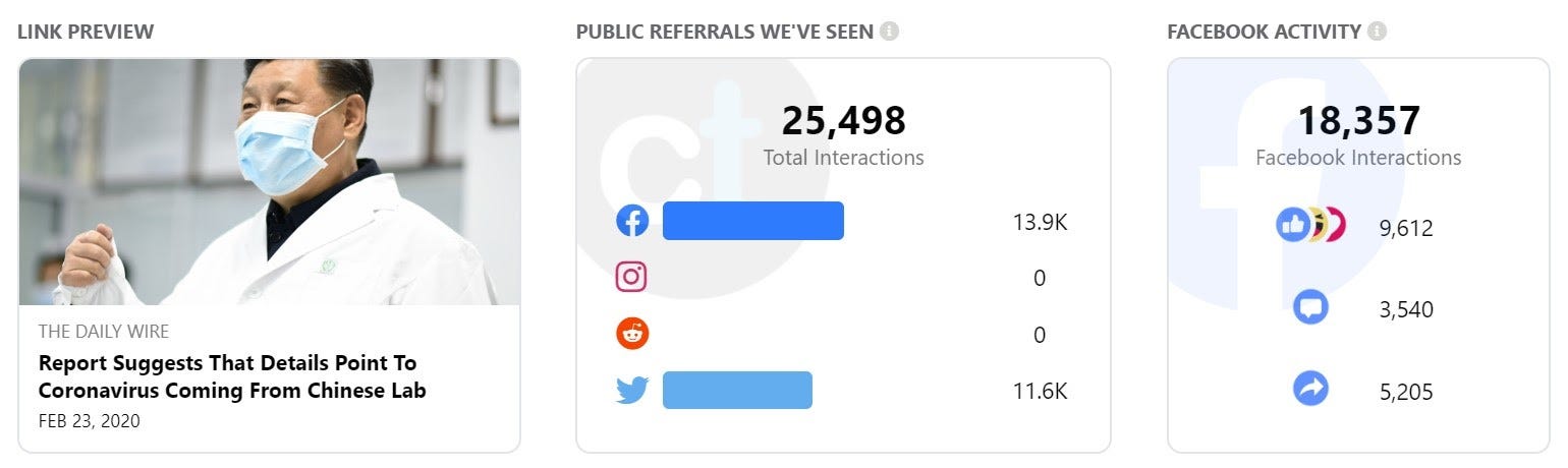 The Daily Wire, the right-wing site founded by Ben Shapiro, aggregated the New York Post column. It falsely described the New York Post column as "reporting," and published a summary under the headline, "Report Suggests That Details Point To Coronavirus Coming From Chinese Lab." The Daily Wire item was shared another 5,200 times on Facebook and more than 11,000 times on Twitter.