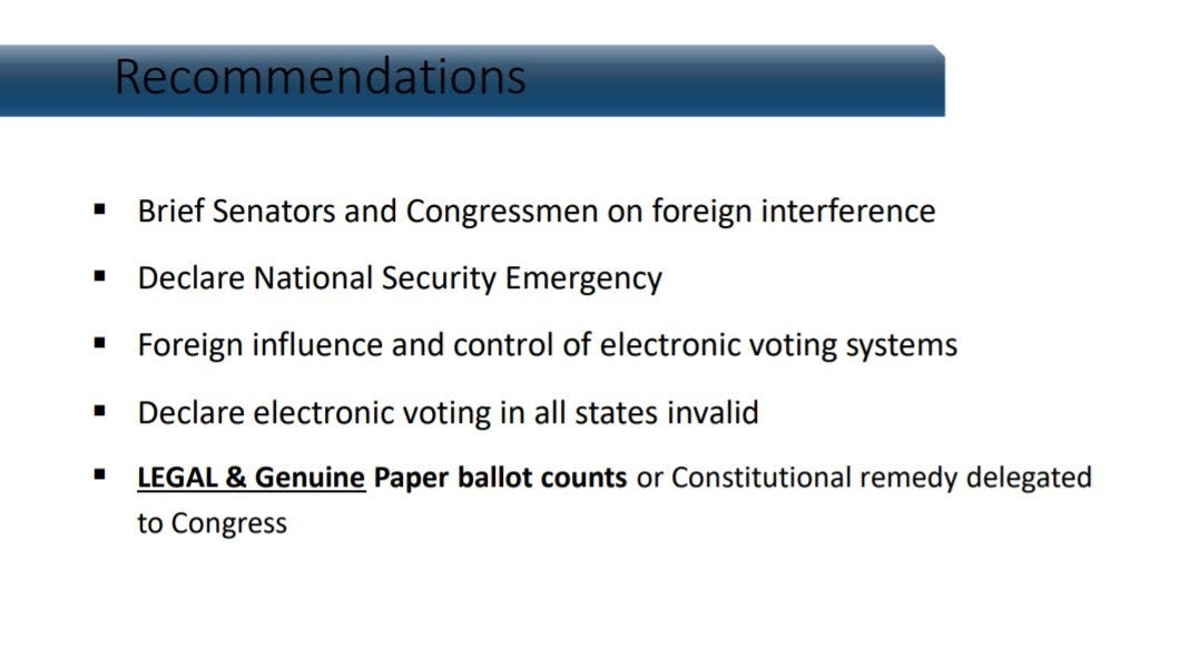 "Declare electronic voting in all states invalid"; "Legal & Genuine paper ballot counts"