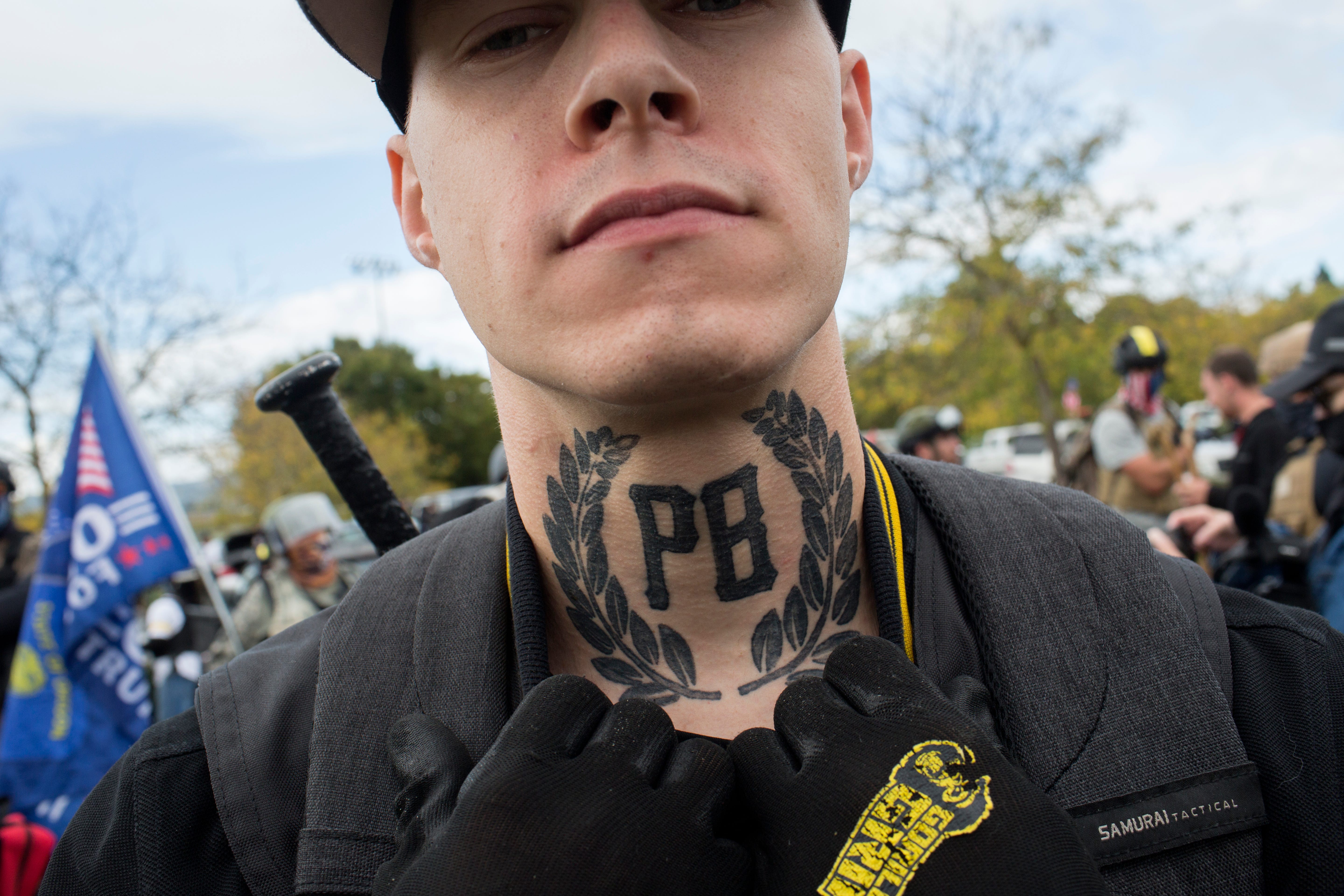 This year, the group has been responsible for fomenting violence in Portland, including a brawl with counter-protesters on August 22. Proud Boys and right-wing militia members came "armed with paintball guns, metal rods, aluminum bats, fireworks, pepper spray, rifles and handguns." On Wednesday, a Proud Boys member who participated in the incident, Alan James Swinney, was arrested on "a dozen charges, including assault, unlawful use of weapon, and menacing." The group now claims Swinney is not a member, despite the fact that he has a Proud Boys tattoo on his arm and actively promotes Proud Boys events.