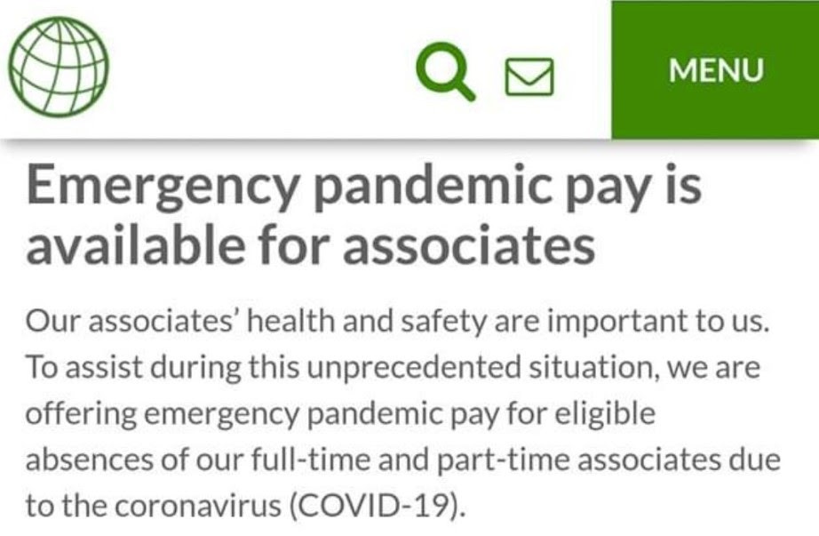 Kroger will provide an additional two weeks of paid sick leave only to workers who are "diagnosed with COVID-19" or "placed under mandatory quarantine by their medical provider or by a public health authority because of COVID-19." Similarly, Amazon, the parent company of Whole Foods, will provide additional paid sick leave only to workers who are "diagnosed with COVID-19 or placed into quarantine."