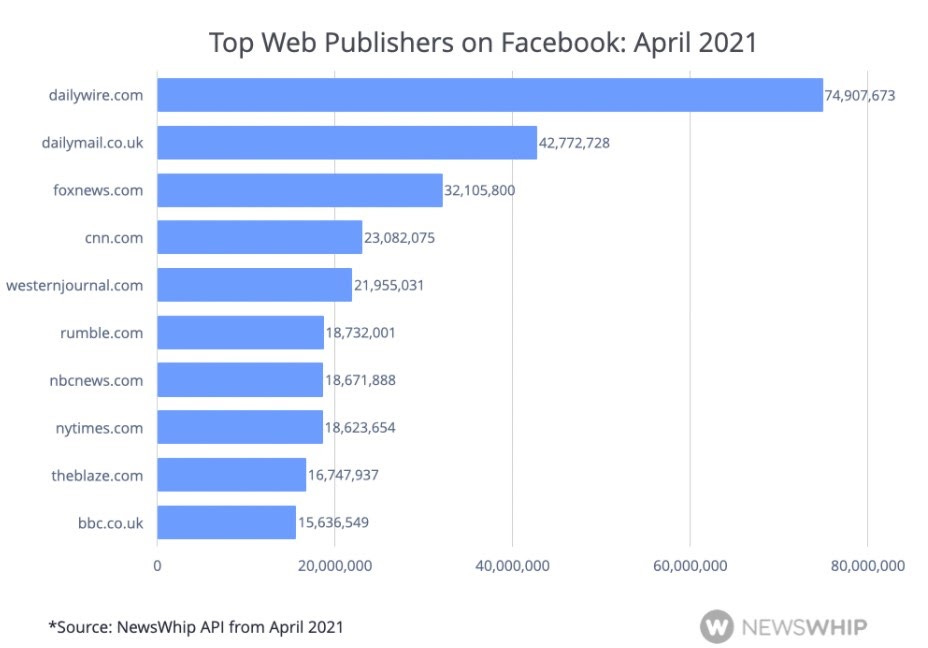 The Daily Wire, which employs a few dozen people, received more than four times the distribution of the New York Times, which employs thousands of journalists. Without Facebook's amplification, the Daily Wire's recycled and bigoted content would likely be as popular as Trump's blog.
