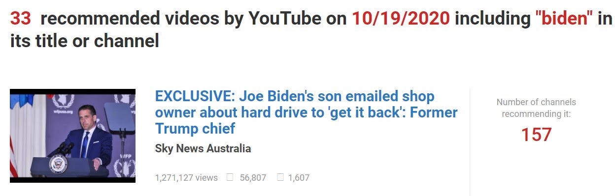 Algotransparency, a public tool that tracks which videos are recommended on YouTube, found that the Sky News Australia segment was being recommended on 157 different YouTube channels — nearly three times more than any other video about Biden.