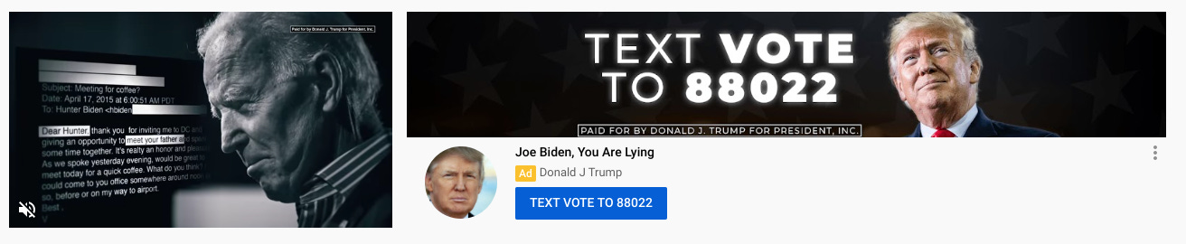 As YouTube pushes misinformation about Biden through its algorithm, it is also profiting from a large Trump campaign at the top of its homepage pushing similar falsehoods.