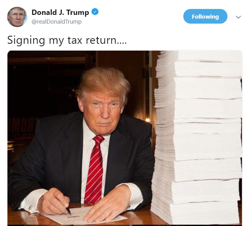 The Democrats now control the House Committee on Ways and Means. Under Section 6301(f)(1) of the tax code, the chairman of the House Committee on Ways and Means has an unqualified right to request and receive the tax returns of any individual:
