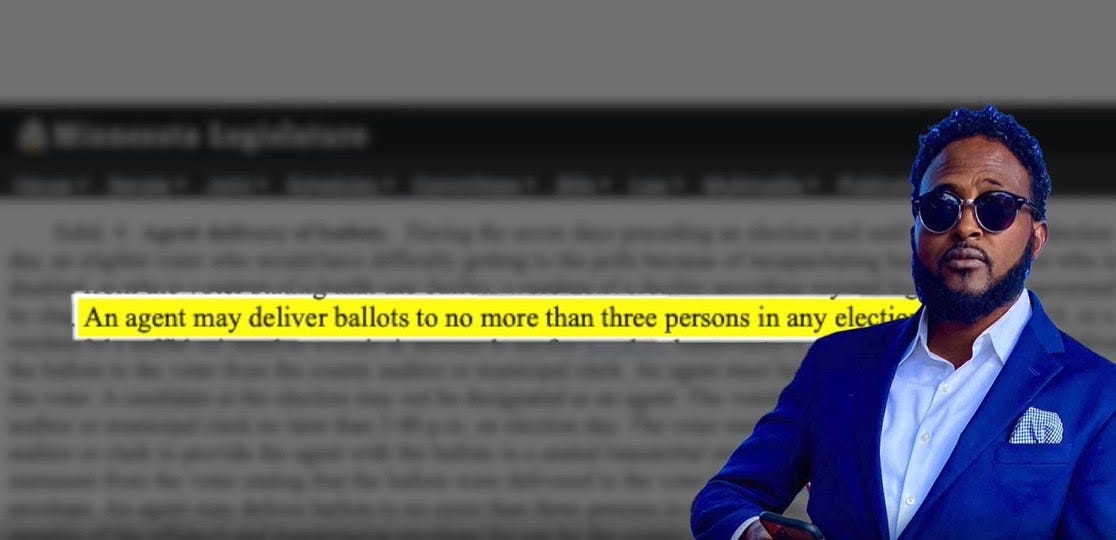 “Just today we got 300 for Jamal Osman,” says Mohamed, aka KingLiban1, in the video. “I have 300 ballots in my car right now…