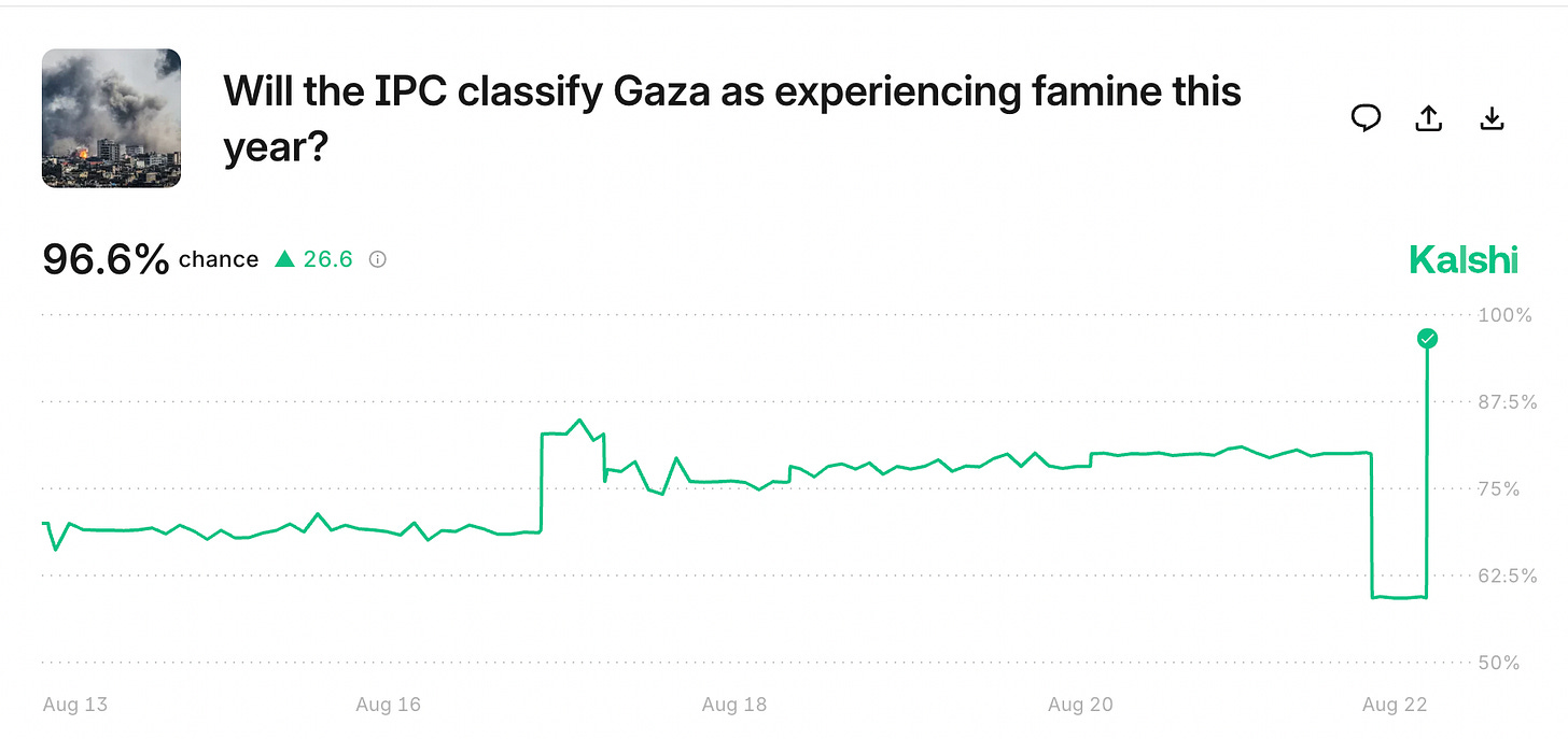 Since the IPC declared there was a famine in Gaza in August, there are people who used Kalshi to profit from the starvation of other people.