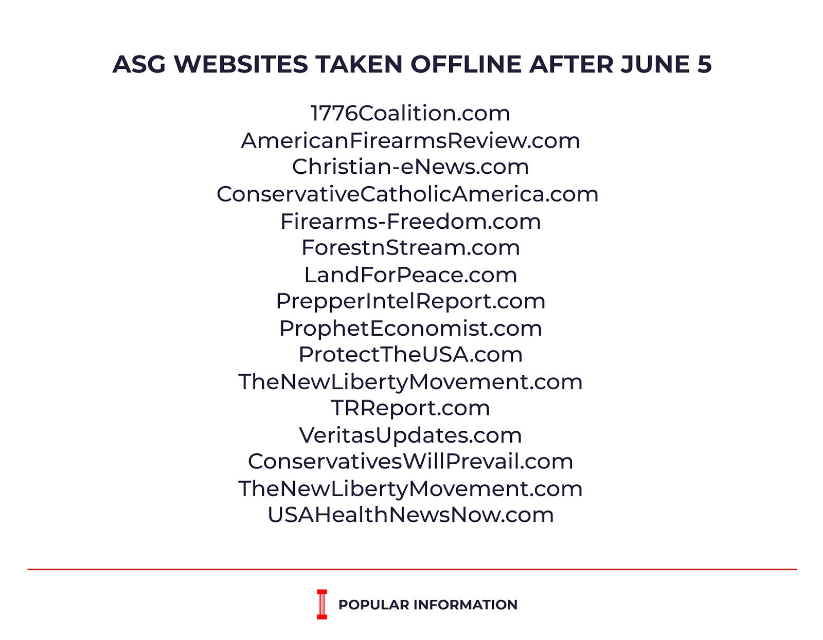 On June 5, Popular Information contacted Rudnick and asked his basis for republishing major media outlets on his network of sites. Rudnick did not respond, but less than 24 hours later, the 1776 Coalition and numerous other websites in the network — many of which have been in operation for more than a decade — were taken offline.