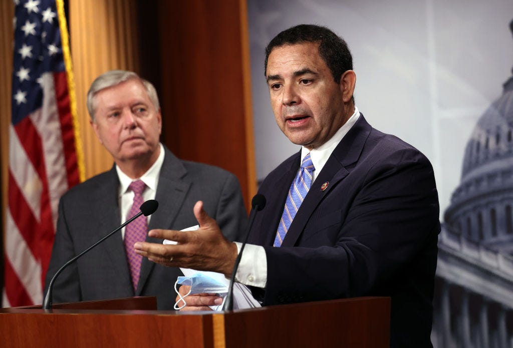 The third-ranking House Democrat, Majority Whip Jim Clyburn (D-SC), campaigned with Cuellar earlier this month. "We have a big-tent party, and if we’re gonna be a big-tent party, we got to be a big-tent party," Clyburn said, “This whole notion that you’ve got to agree with everybody on everything is pretty sophomoric to me.”