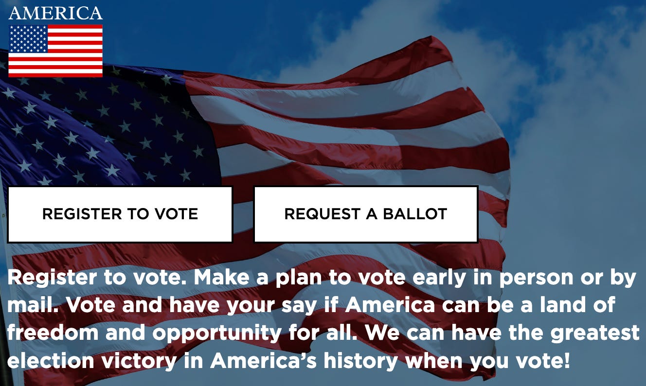 The America PAC website encourages Trump supporters to "vote early in person or by mail." It includes a link for voters to request an absentee ballot.