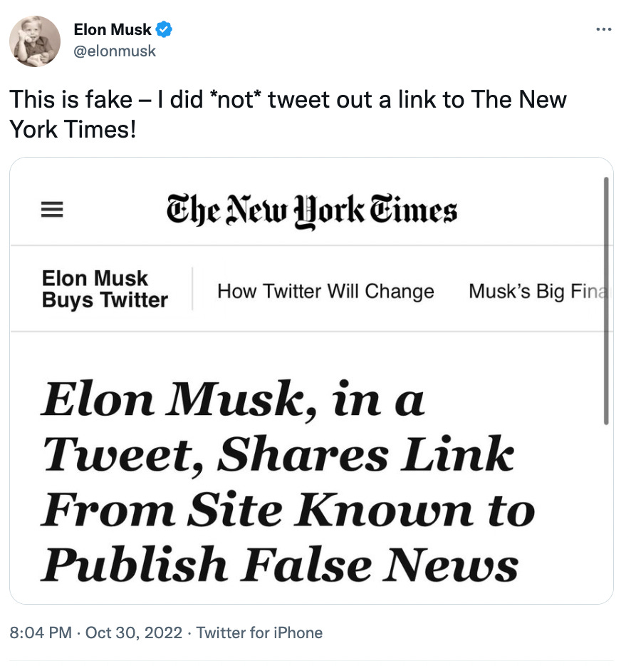 Musk is CEO of one of the world's most powerful communications platforms. In just a few days, he has used that role to promote disreputable news sources and disparage legitimate news sources.