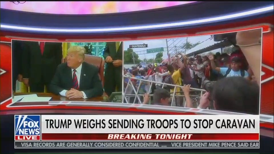 Trump's claims about the caravan are also amplified to millions of people nightly on Fox News.