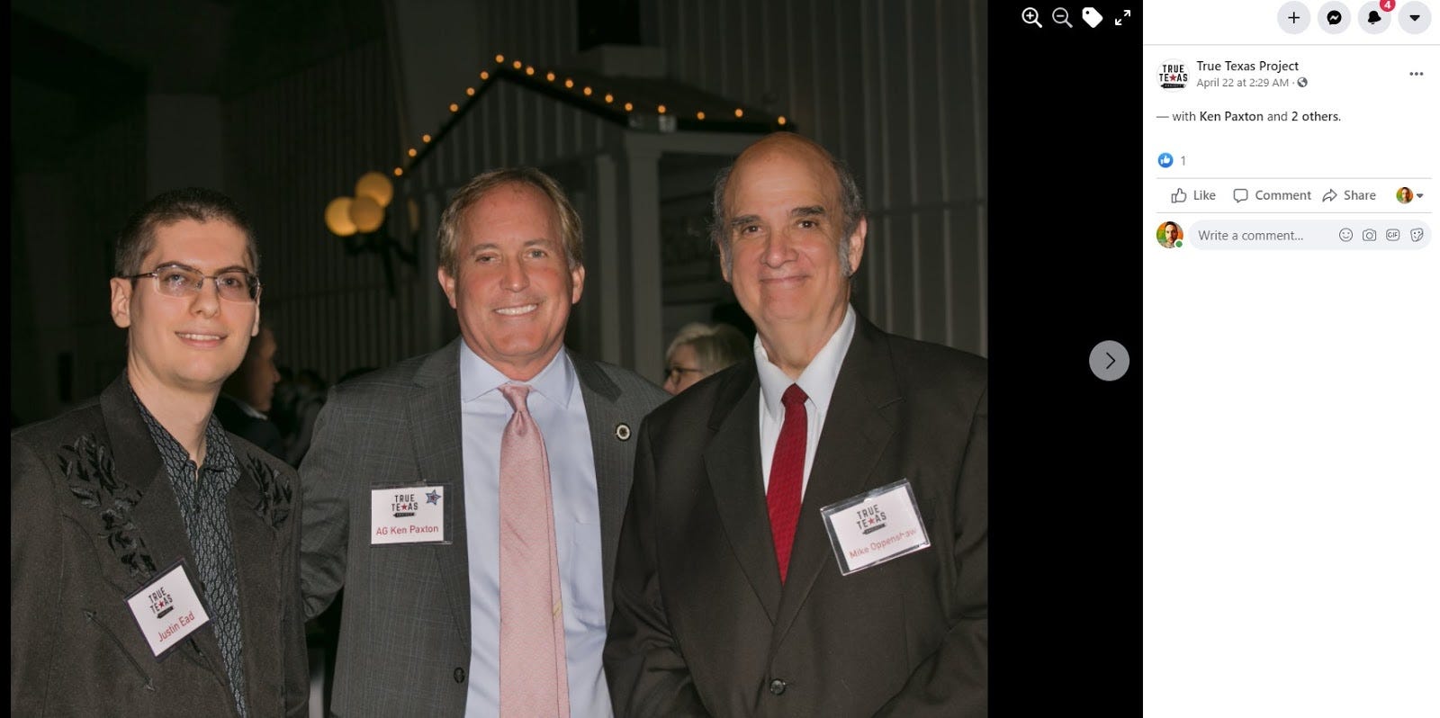 But West is just one of many Republican officials with ties to the True Texas Project. A fundraiser for the True Texas Project last week featured Texas Attorney General Ken Paxton (R), according to a photo posted to the group's Facebook page.