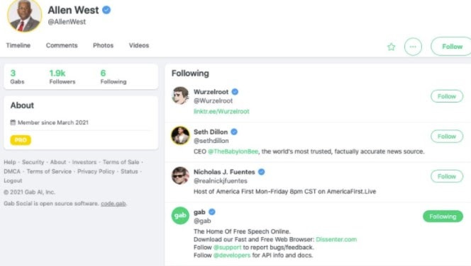 West refused, and established his own account on GAB. He initially followed only six accounts, but one of them was white nationalist Nick Fuentes, the leader of the racist "Groyper" movement.