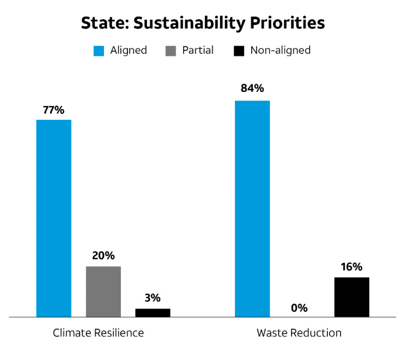 This problem is also evident at the state level. AT&T acknowledges that there are bills relevant to climate change that are passed at the state level. But it only considers votes on enacted bills related to "Climate Modeling for Network and Community Resilience/Adaptation" and "Waste Reduction and Management." AT&T claims that the state legislators it supports are aligned with its "sustainability priorities" even though many legislators supported by AT&T reject climate science and block any significant effort to address climate change.
