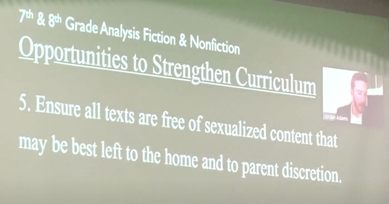 Adams added that the district needed to "ensure all texts are free from sexualized content that may best left to the home and to parent discretion." He said the books selected by the district would "raise questions" about why books with "sexualized" content were selected as opposed to "other worthwhile works."