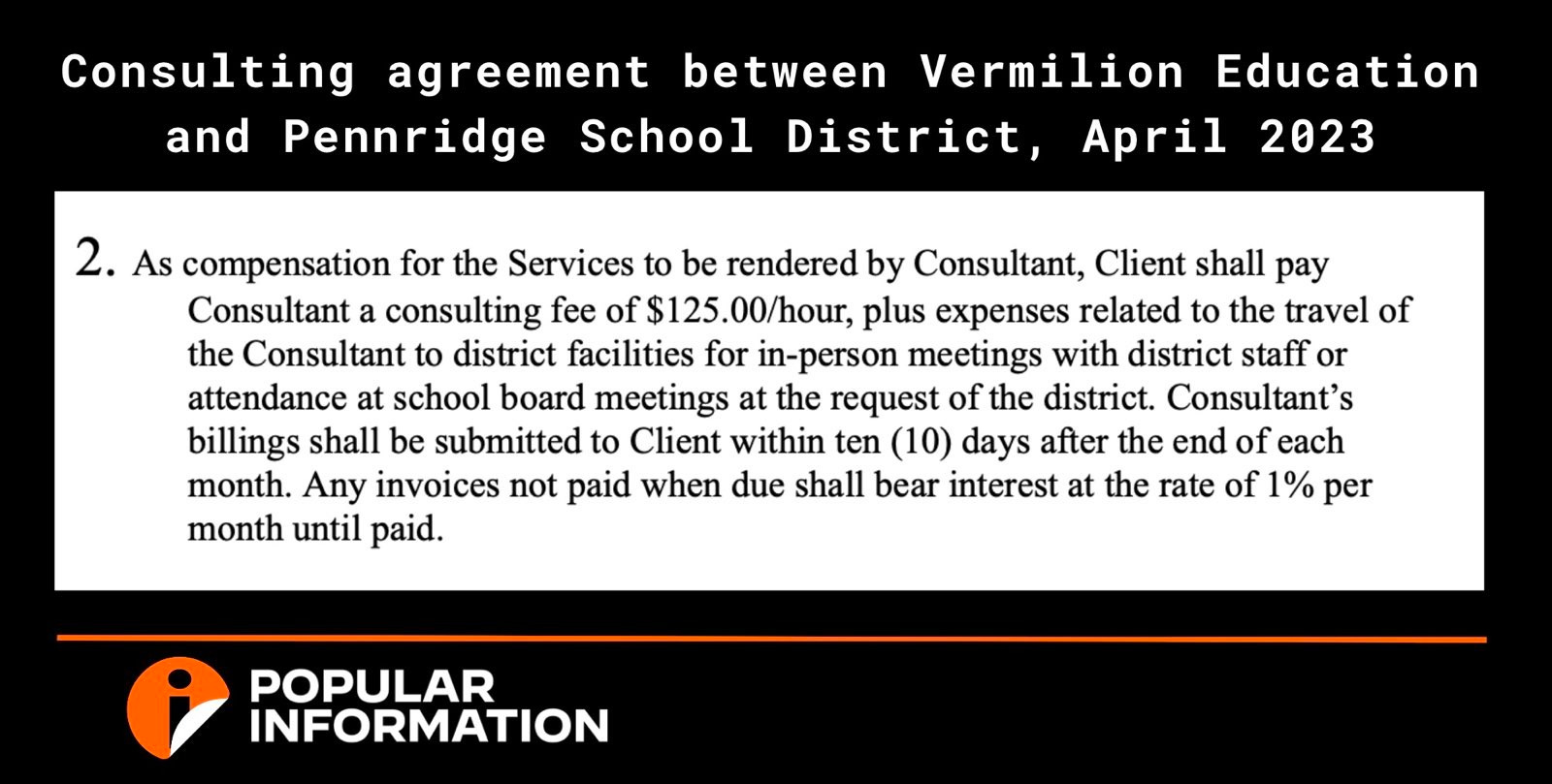 In an interview, Wurz told Popular Information that Adams' presentation was "amateurish," "horrible," and reflected "a total lack of preparation." Wurz was particularly disturbed that Adams has already billed the district $7500 — the cost of 60 hours of work under the contract — to craft his recommendations.