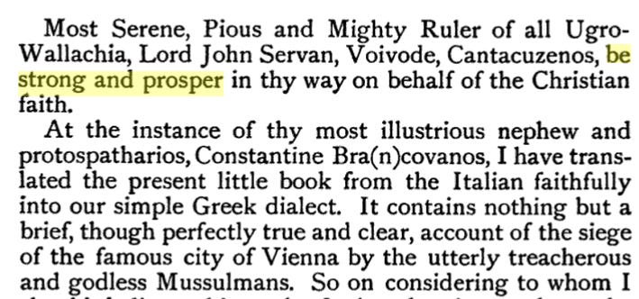 There is a contemporaneous account of the Battle of Vienna, which has been translated into numerous languages. The first line of the text concludes: "[b]e strong and prosper in thy way on behalf of the Christian faith."