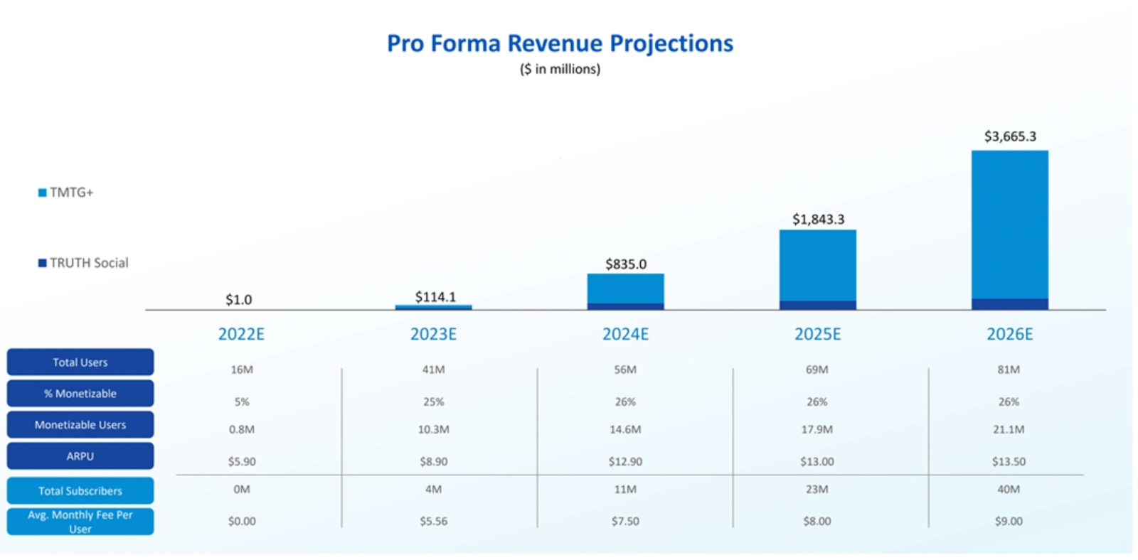 It's important to understand that while Trump could enormously profit from this venture, Truth Social is a disaster by all conventional metrics. In its initial November 2021 pitch to investors, the company predicted it would collect $114.1 million in revenue in 2023 and $835 million in 2024.