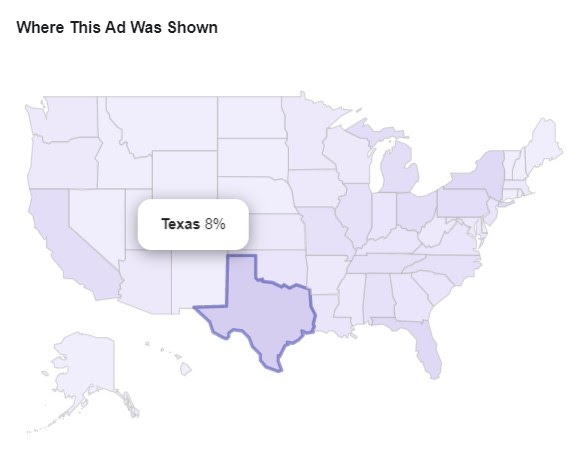 Yet, according to Facebook data, the Trump campaign marketed the contest extensively to residents of those states. In one heavily promoted version of the ad, 73% of the impressions were targeted at users in states subject to New York's quarantine order.